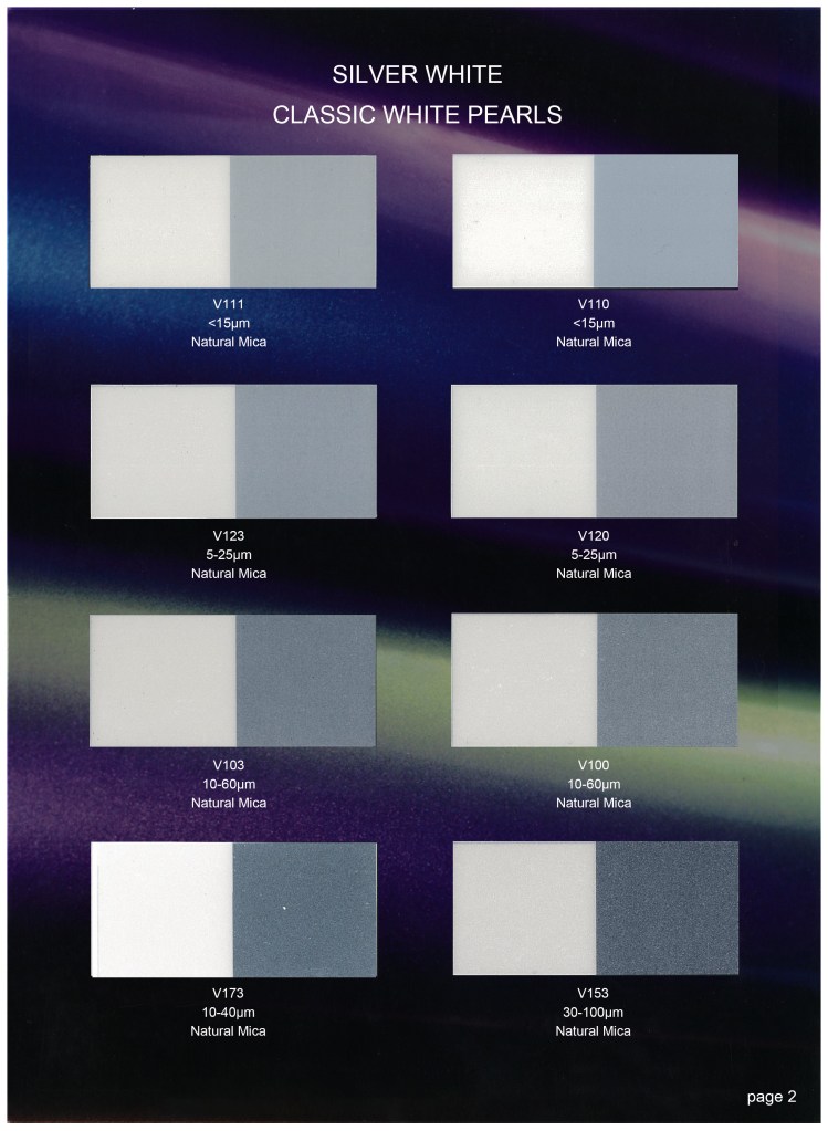 Pearlescent pigment, also known as mica powder, is a special effect pigment that creates a shimmering, pearl-like luster.
